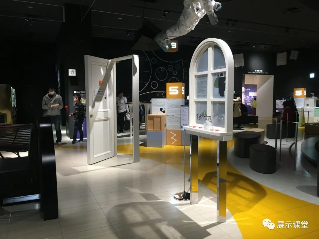 這個展區(qū)通過設(shè)置任意門、窗戶、頂面懸掛宇航員模型,讓空間變得更加有趣,充滿想象。還可以是圖版+氛圍營造,將展廳想要展示的內(nèi)容,融入到整個展廳設(shè)計空間場景布置中。