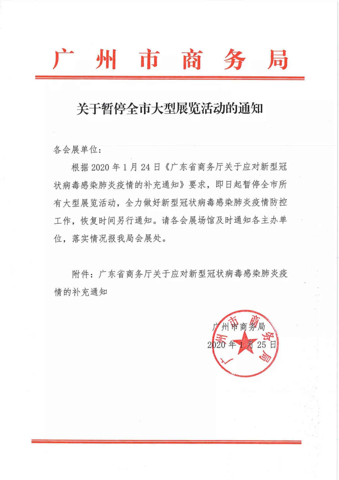針對(duì)目前“新型冠狀病毒”的疫情防控要求,接廣州市商務(wù)局《關(guān)于暫停全市大型展覽活動(dòng)的通知》,即日起暫停全市所有大型展覽活動(dòng),全力做好新型冠狀病毒感染肺炎疫情防控工作。為保障廣大展商和觀(guān)眾的健康,保證展覽會(huì)的展出效果,原定于2020年2月9-11日在廣州市保利世貿(mào)博覽館舉辦的“第23屆迪培思廣州國(guó)際廣告標(biāo)識(shí)及LED展”將延期舉辦,具體恢復(fù)時(shí)間將根據(jù)形勢(shì)發(fā)展第一時(shí)間另行通知。